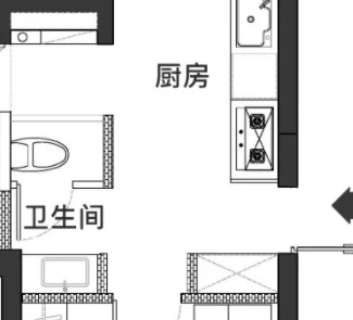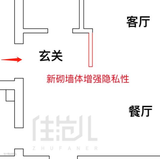 进门太窄,可以考虑掏墙借面积,或者如果差太多,就直接把墙体挪一下。(注意:是非承重墙)