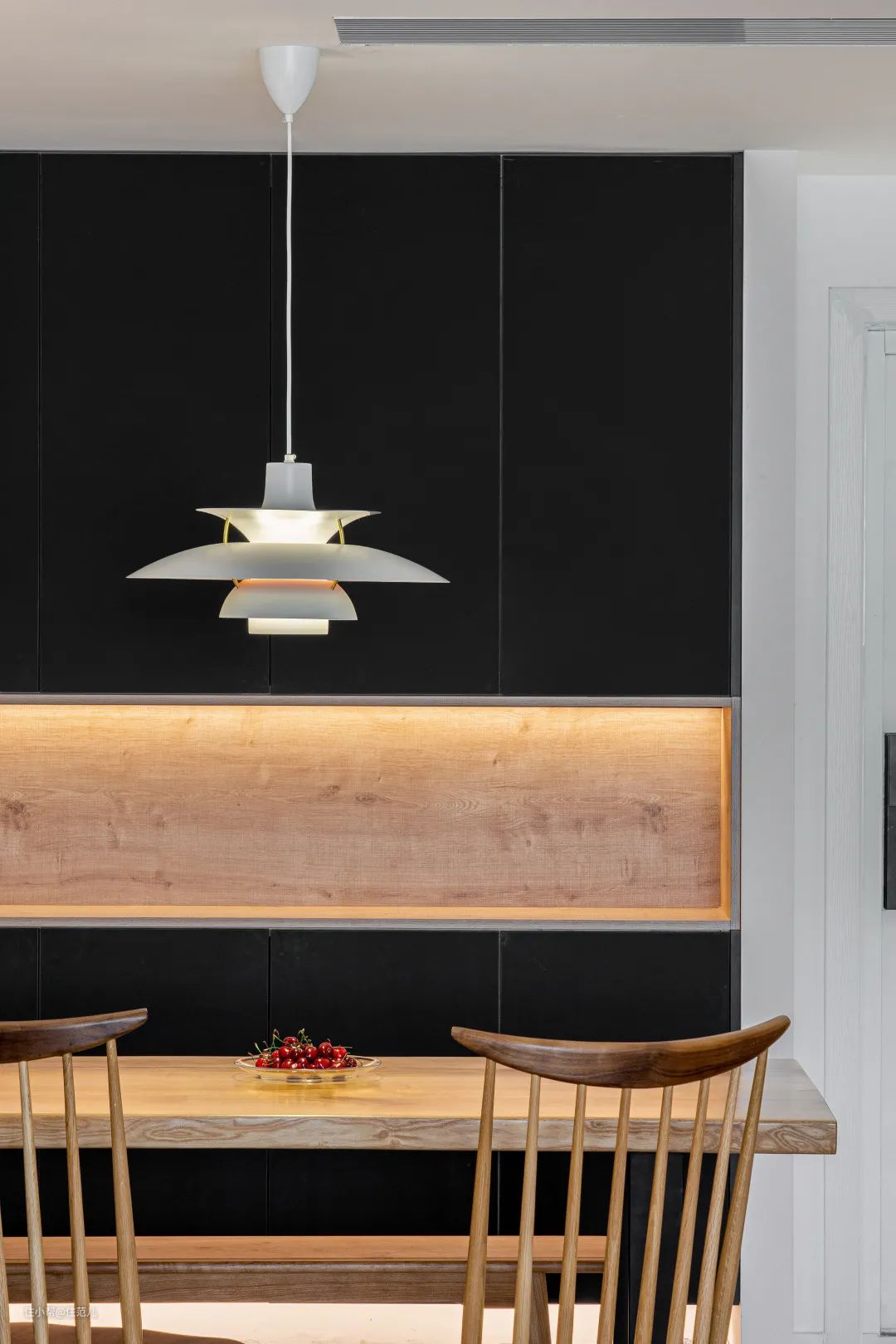 如果你家客厅、餐厅区域刚好要打柜子,和玄关形成一条线,完全可以一体化设计,连起来非常好看。