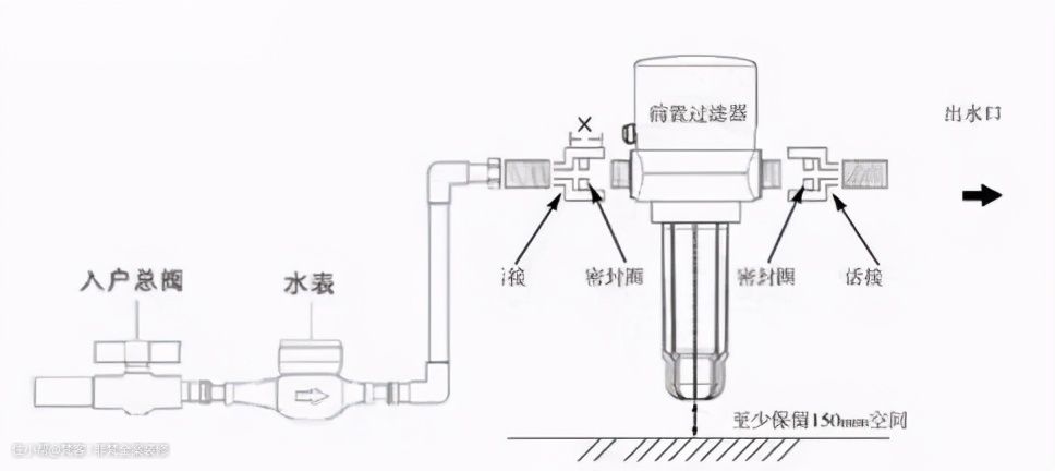 前置净水器不需要电源,不设地漏,安装的时候只需要把前置过滤器焊在水管两头,用的过程中可以观察过滤器下面污垢的沉积情况,污垢较多时要打开底部阀门进行冲洗,还要定期更换阀芯。前置过滤器阀芯通常为PP滤芯和活性炭复合