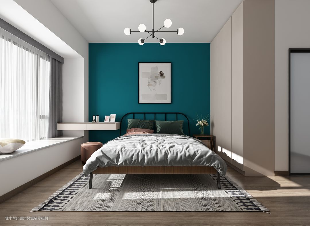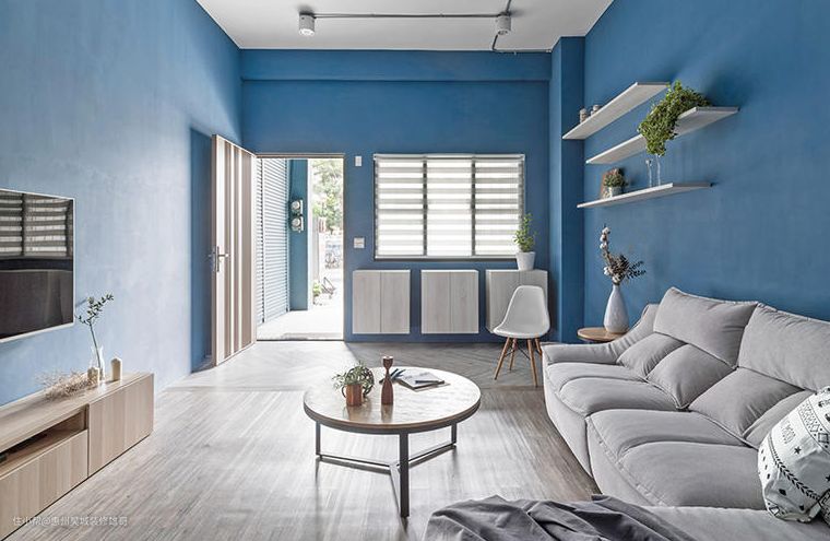比起传统的小清新蓝色,明度更低一些,也就多了一份沉稳感,搭配上一套木质的家具,满满的北欧风情就展现出来了。