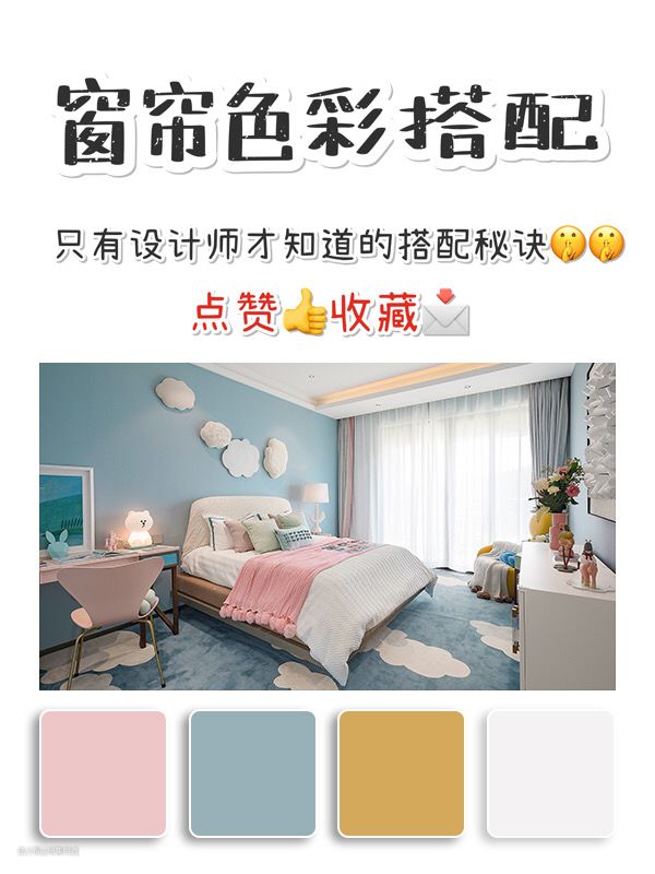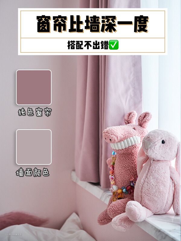 窗帘比墙深一度,墙浅的窗帘很好挑窗帘,比如p4中的粉色墙面与窗帘,显得高级又温馨。