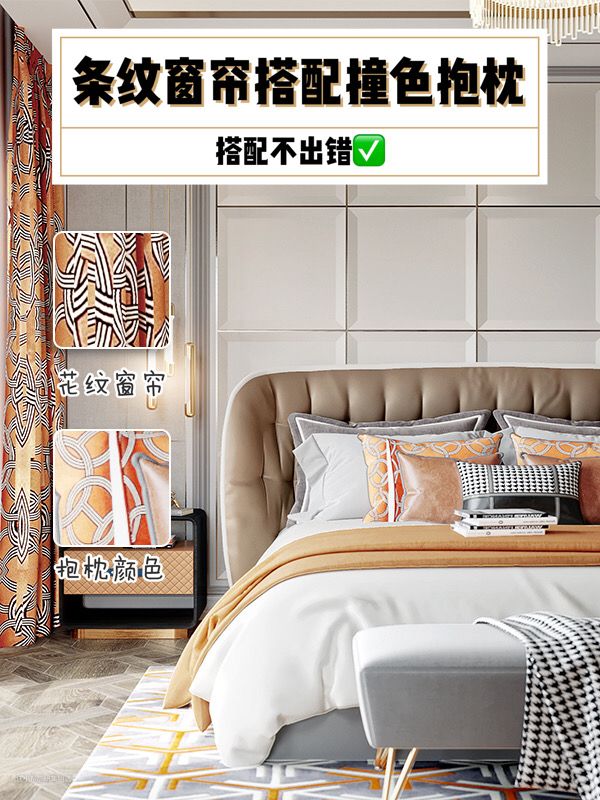 窗帘和家里的小物件保持一致,比如抱枕/装饰画,画龙点睛的搭配效果。