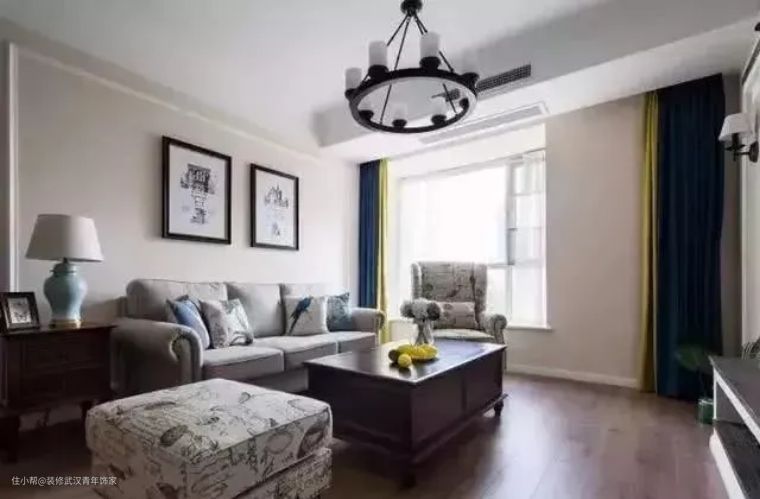 10、蓝色窗帘,让客厅看起来更具有刚性;