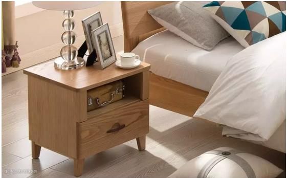 原木色的床头柜,也算比较好搭配的家具单品之一。