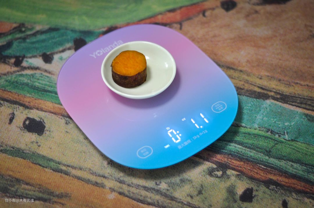从颜值上来看,属于太太满意我就满意的那一档,糖果色在厨房里确实比较亮丽,透光设计即使是灯光昏暗的老厨房也能支棱开。功能上去皮最实用,剩下的就是当时比了一圈,这个厨房秤的单位是最全的。毫升、盎司、磅数、克重,啥都有,对被全球各国菜谱逼疯的厨房用户来说太友好了。