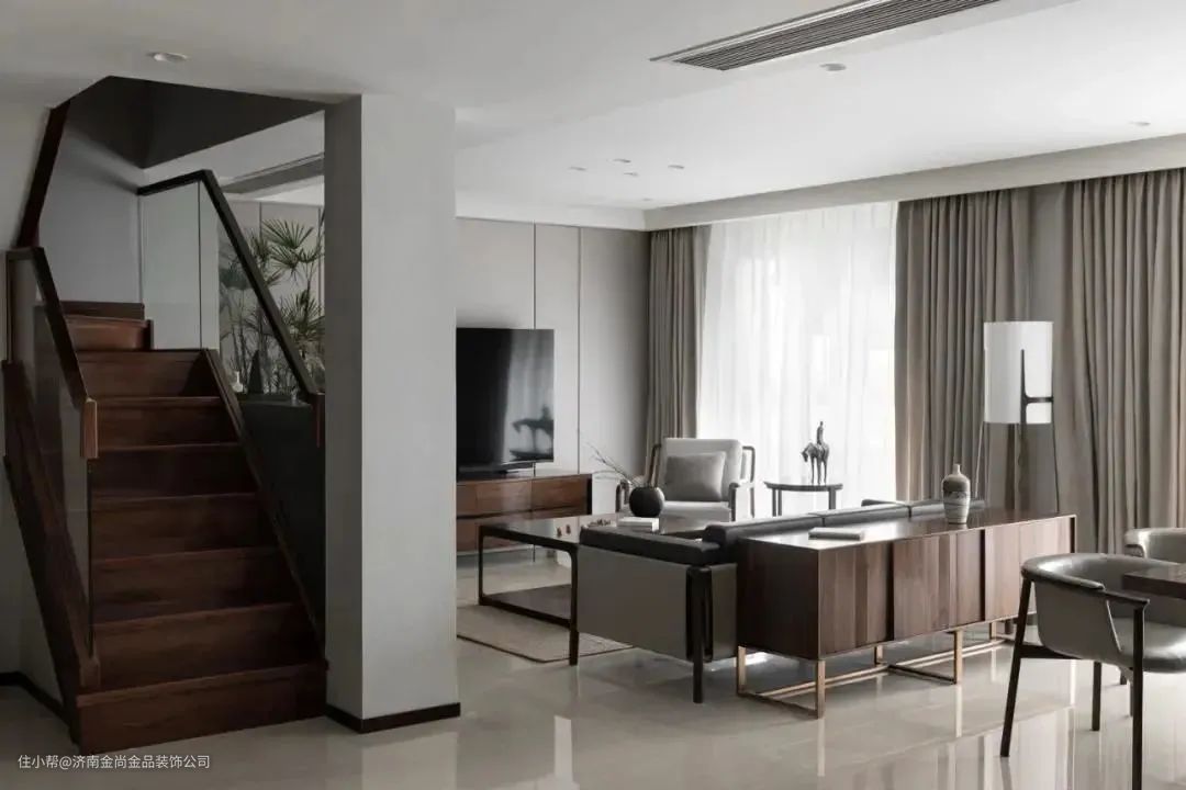 若是复式楼或自建房,室内空间有楼梯,沙发背靠楼梯摆放,同样非常的实用,正好楼梯下的部分空间可以被巧妙隐蔽起来。