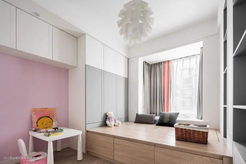 除了客厅下沉式设计,卧室背景墙做了半墙处理,u型布局的衣柜设计以及儿童房的榻榻米设计亮点颇多,希望今天的112平现代风格装修案例可以给大家多一些设计灵感参考。晚安!