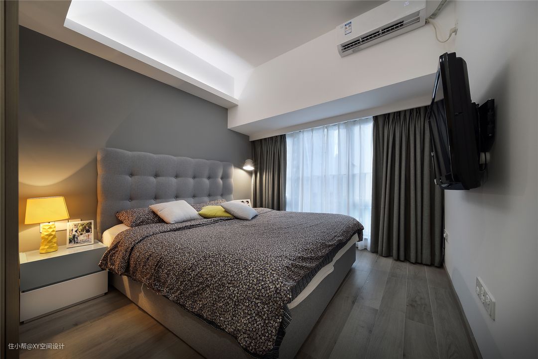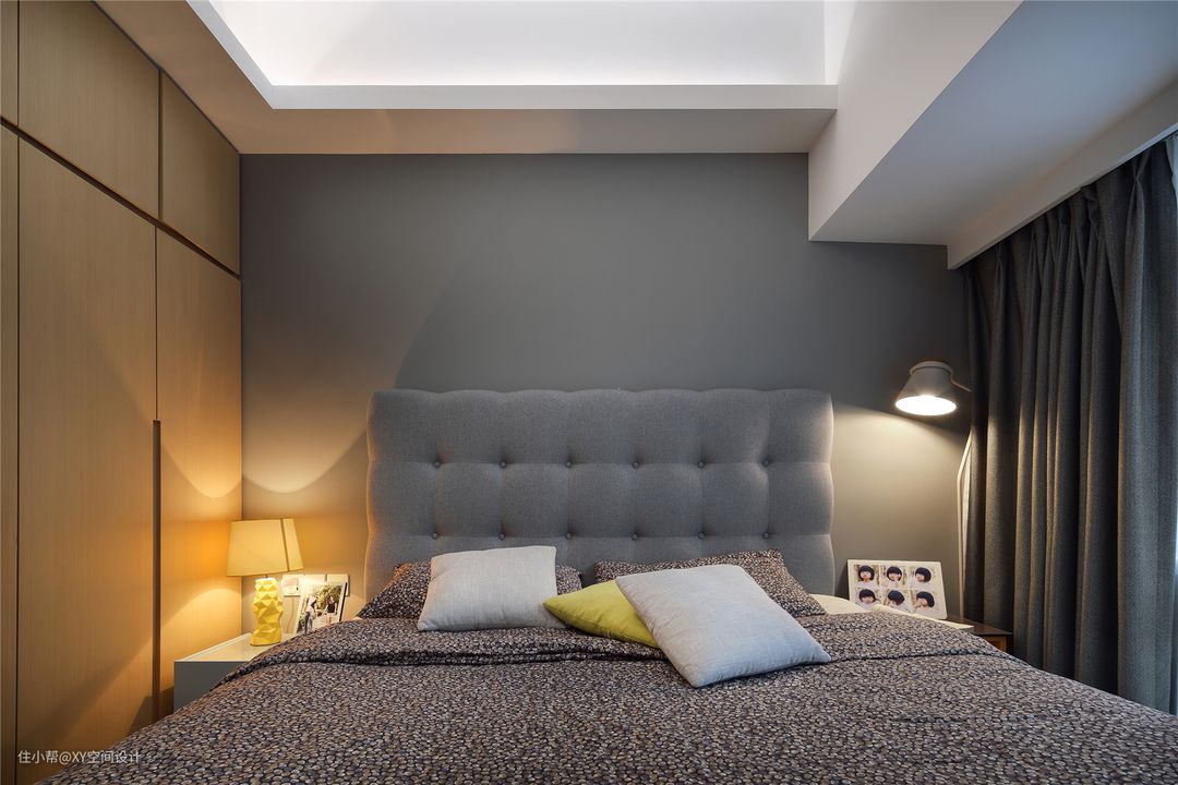 主卧是以浅灰色为设计色调,感觉很有艺术感。儿童房将墙粉刷成薄荷绿色,搭配薄荷绿的床铺,看起来清新自然。业主的孩子很喜欢画画,设计师为此专门设计了一面可画墙。