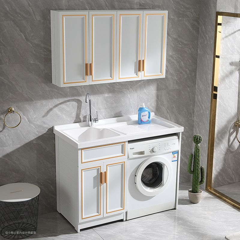 请提前规划好插座位置,方便日后的电器使用,阳台柜的台面可以采用石英石,常年在外面风吹日晒都不怕,很耐用而且好打理。柜体的底部一定要离开地面5-10cm左右,避免受到潮气影响,或者放上一个带滑轮可移动的支架,洗衣机坏了也可以很方便的拿出来维修。