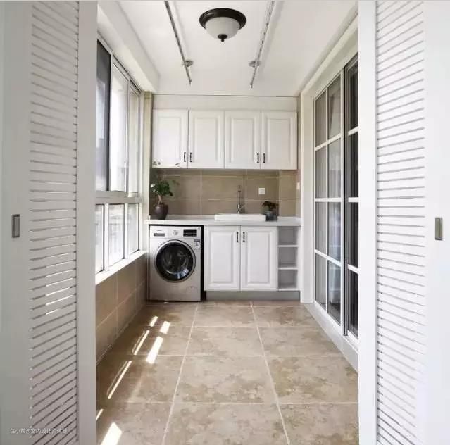 阳台这样设计,吊柜地柜收纳全能,洗衣晾晒有好去处!