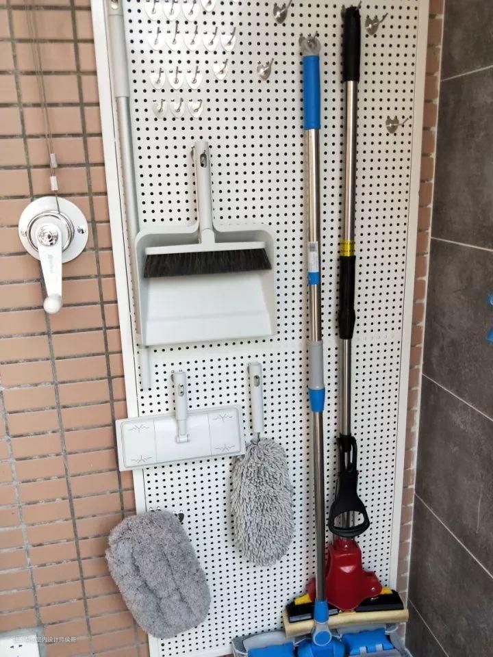 主打晾晒功能的阳台,怎么能少得了洗衣机的存在,吊柜、洞洞板收纳,手摇式的晾衣架,应有尽有。