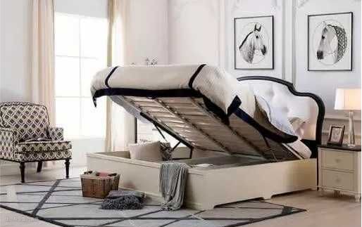 虽然好看,但是床下什么东西也放不下,建议选择这种高一点,带床箱的床,能提供最多1立方米的储藏空间。一次性解决了65%的卧室储藏空间