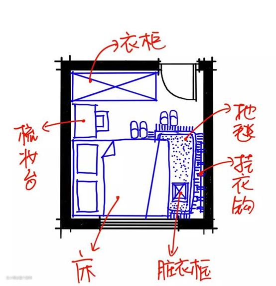 好,我们看看一个正常的卧室,到底需要多少收纳,为了方便理解,我们把一般人习惯的卧室收纳布局也统计出来,进来做对比。