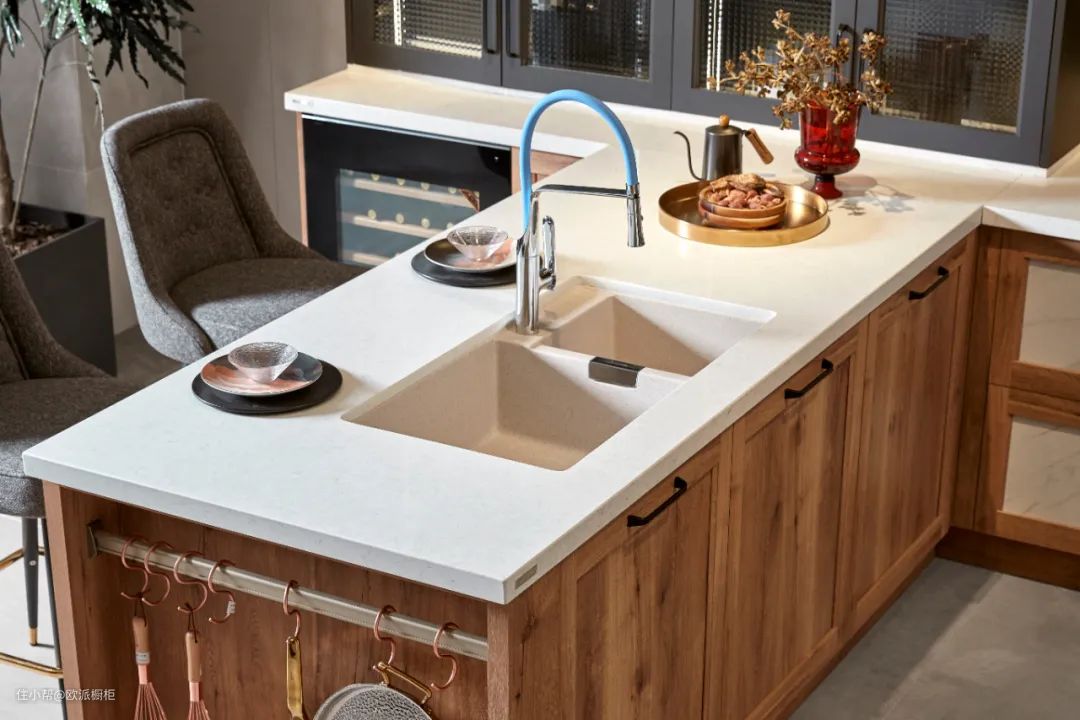 由于石英石台面表面具有极好的抗腐蚀能力,所以清洁时只需要用抹布沾清水或肥皂水后擦除即可啦~