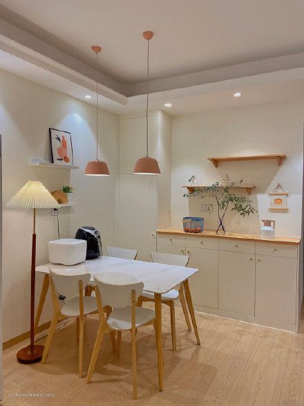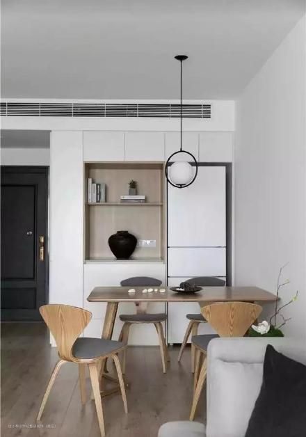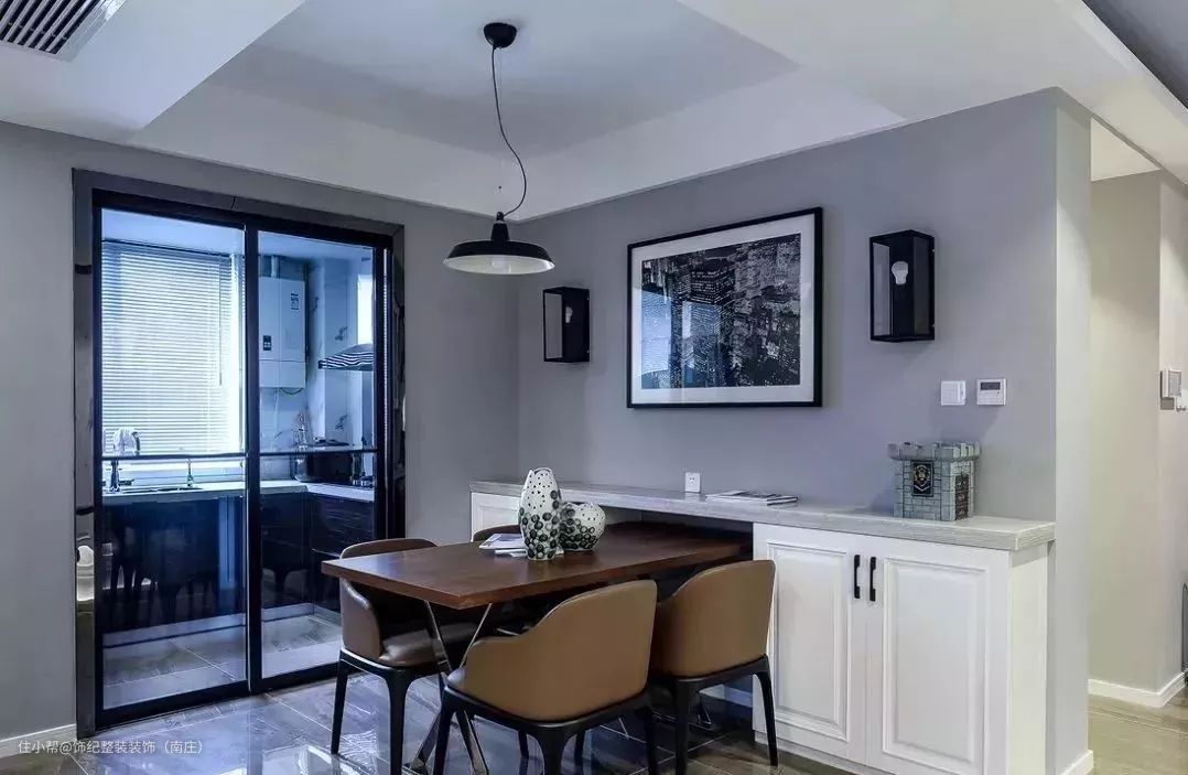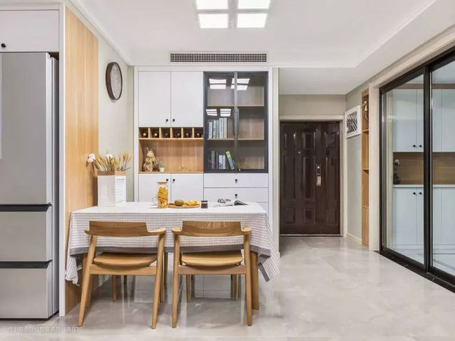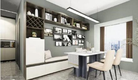 小户型由于餐厅面积本身不充足餐边柜不但要考虑收纳能力而且要考虑控制空间的占用和尺寸使餐厅不要因为餐边柜而影响整体室内视觉空间。