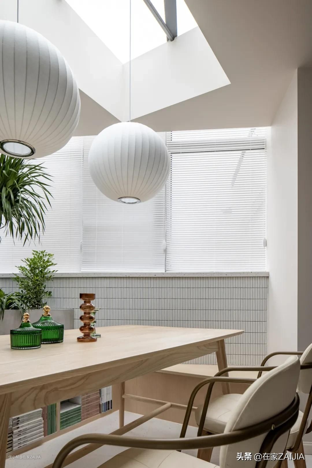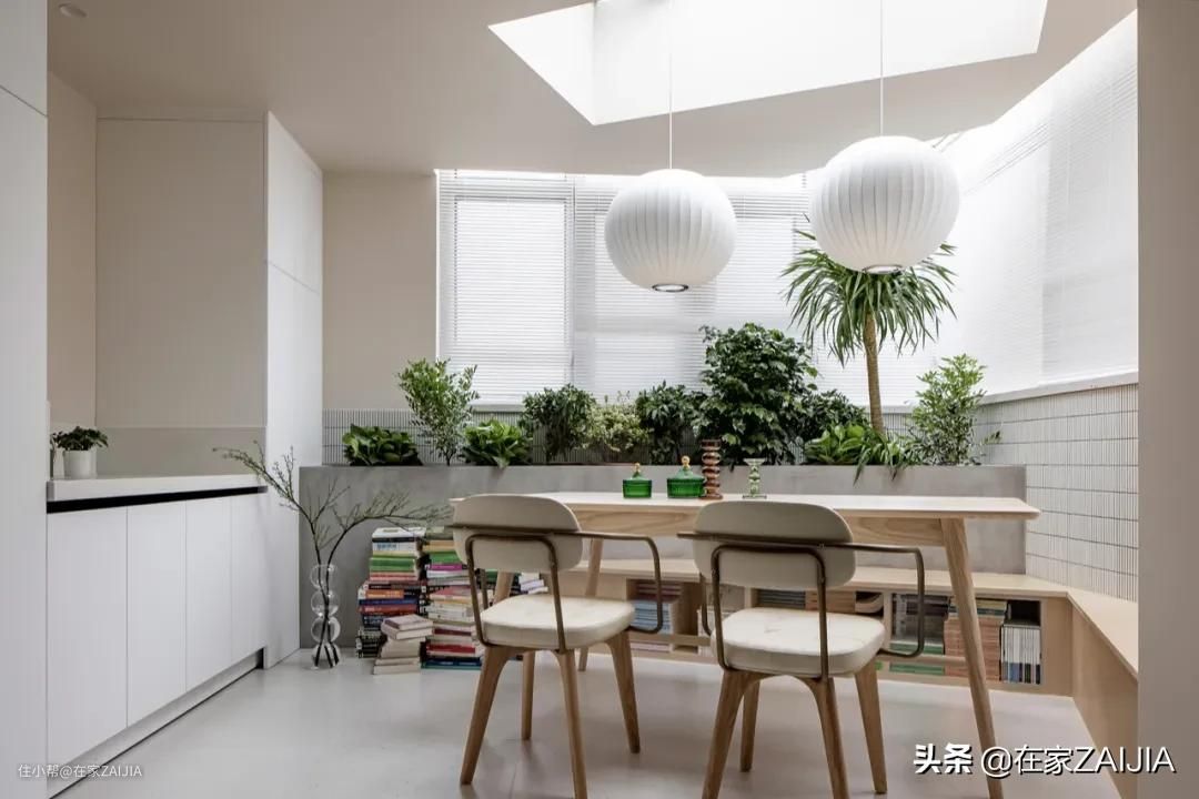 改造时,设计师将阳台包进室内,并在顶面开窗,将阳台改成了花园餐厅。