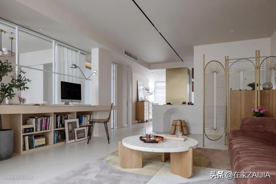 为保证公共区的通透感,玄关和客厅之间仅以装饰屏风分隔。屏风既能作为客厅装饰,进门后,视觉上有一定的缓冲和层次递进。