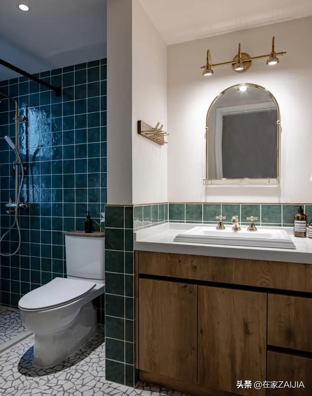 在调整空间布局时,设计师将次卧面积适当缩小,将卫浴间旋转90度,调整成横向的长方形空间,实现三区分离的卫浴间布局。改造后,马桶、洗漱台和淋浴间相互独立,使用更便利。