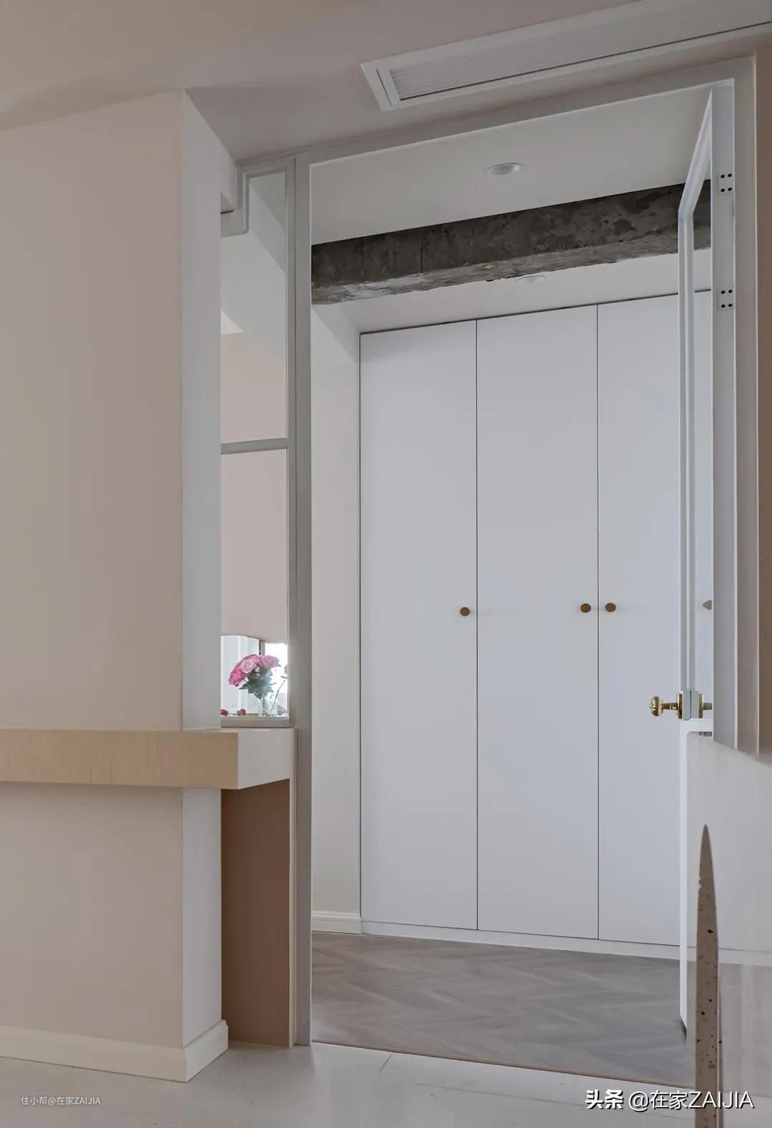 主卧入口处,借用部分卫浴间面积,新增了一个步入式衣帽间。