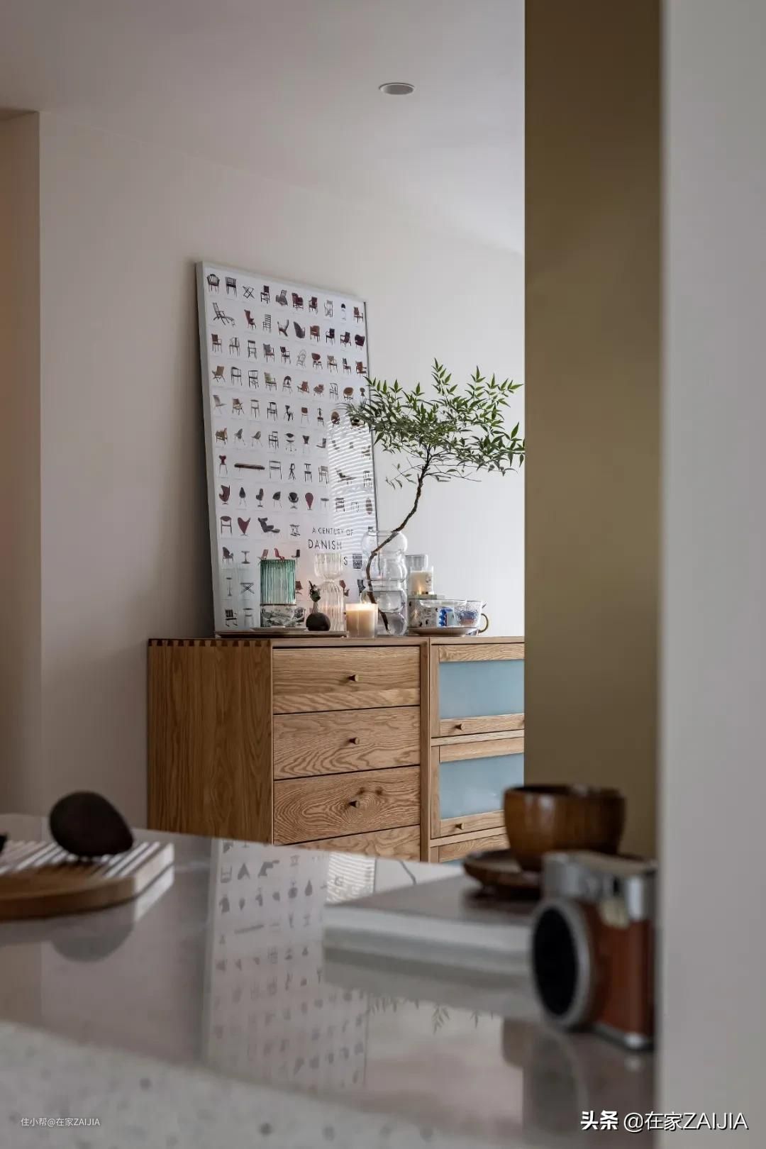 左侧结合墙面结构定制地柜,作餐边柜使用。