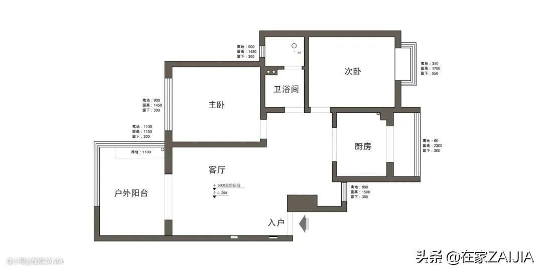这是套老房,很多结构拆不了。原户型进门就是客厅,餐厨是挤在一块的,使用很不便利,但胜在阳台够宽敞。