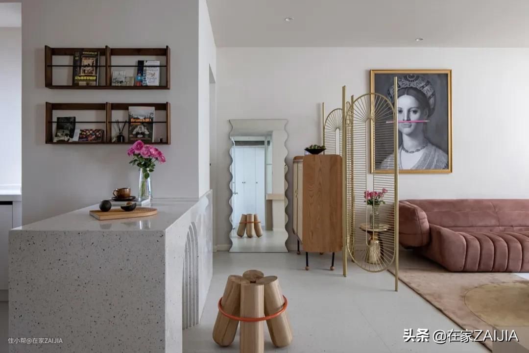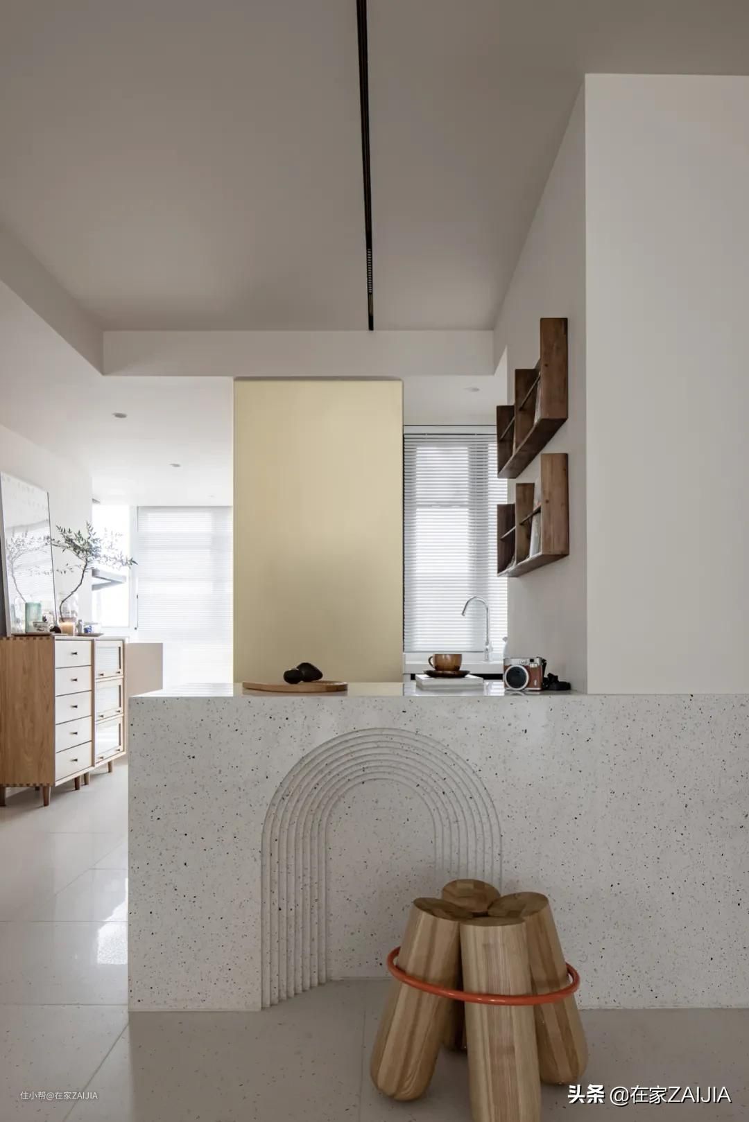 利用吧台模糊厨房边界,让其自然融入客厅;