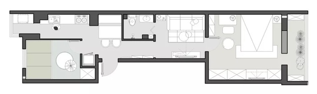62平的小户型二居室,长条形的格局,却设计得非常明亮