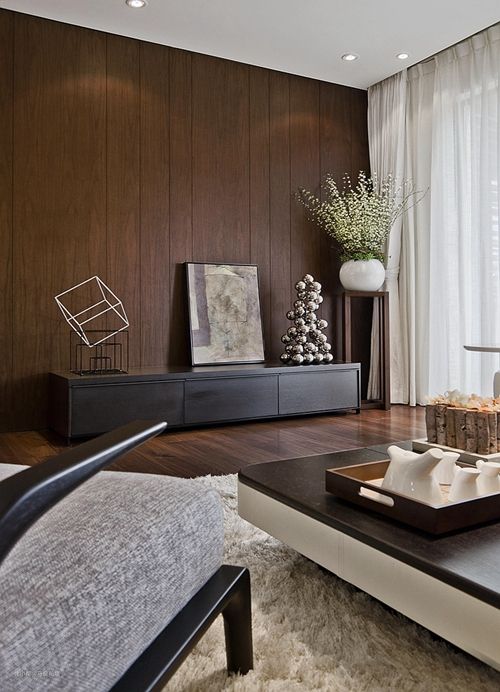 实木板材可以让整个墙面都非常精致,并且有大气贵气的感觉,只是小户型不是太合适,容易让空间显得拥挤。