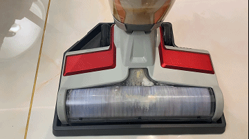 我们看滚刷脏了我们就启动自清洁方式吧,平时拖地都得一遍又一遍的刷拖布,平时还得准备个涮拖布的筒太麻烦了。先把机器放在电源托盘上,在LED屏幕按下自清洗功能就开始了,可以反复多清洗几遍更干净。有了洗地机方便多了,和过去涮拖布的日子说拜拜吧。
