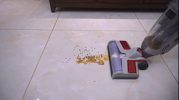 测试的是豆粒是看它清理比较大的垃圾的效果,轻松吸进没有问题,当然做到这些吸尘器也没有问题,所以这不是今天测的重点。下面重点来啦!