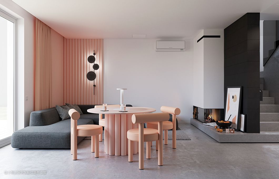 当它与柔美浪漫的粉色相遇,恰到好处地中和了过于柔嫩娇俏的粉,彰显出有点少女,又有些高冷大气又不乏柔情的家居格调。
