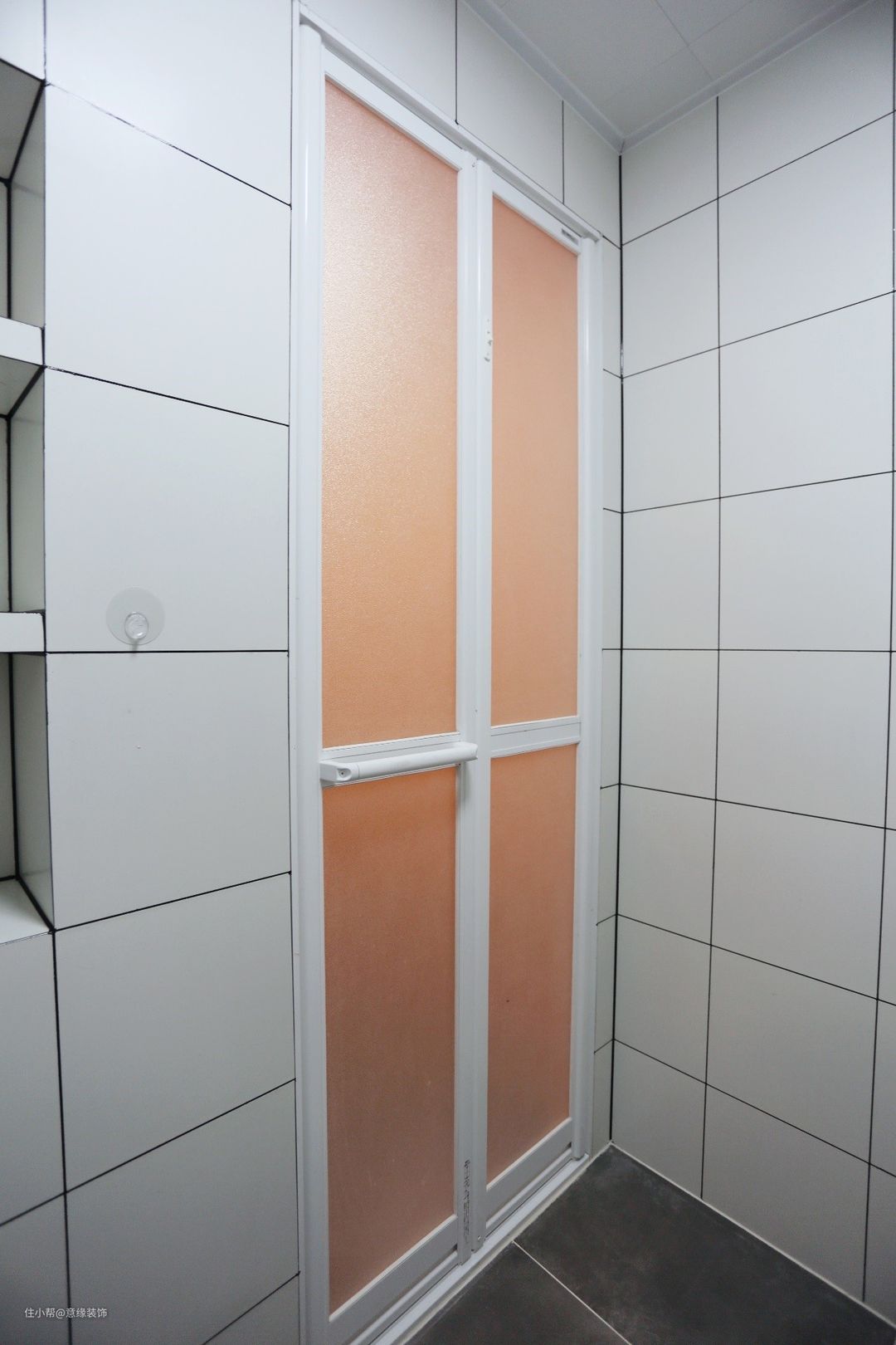 △特别买了日本三协专业的浴室门,很轻,比玻璃隔断更防水透气,关上门,浴室的水完全不会跑出去,还有紧急救援功能,能够在里面锁止的情况下从外面紧急打开