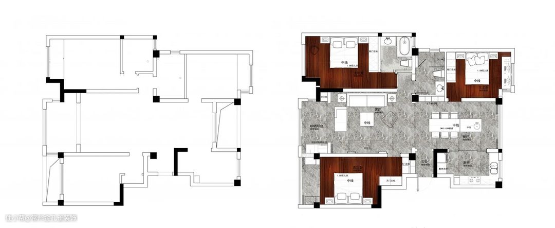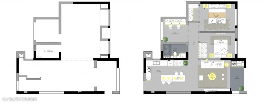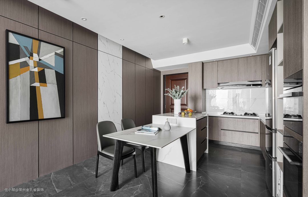 改造后:厨房面积扩大,中西厨组合,让空间更有连贯性。