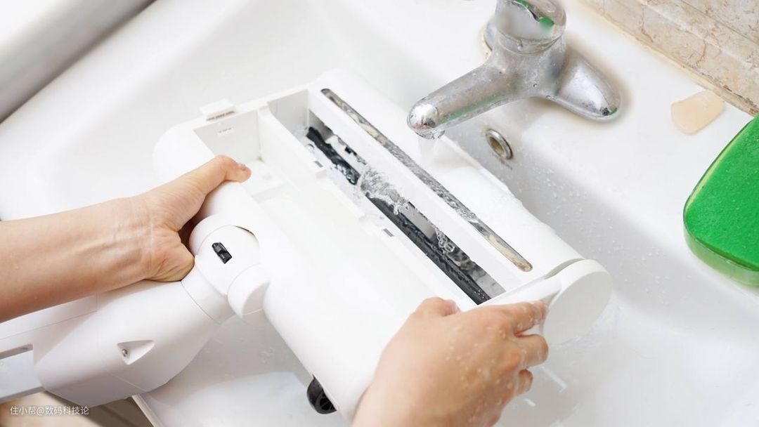 并且去掉主要配件以后,主机头是可以直接放在水龙头下冲洗的,这点也比拖地机要更好用。我以前用过一些网红款的拖地机,大部分是主机不能见水的,实际使用起来并没有这款产品方便。
