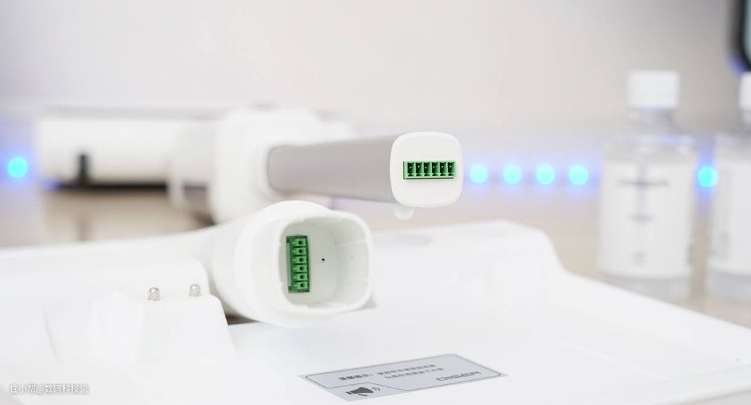 主机、铝合金延长杆与手柄之间通过带插销的方式链接,而从内部走线来看,也不似低端产品的就是简单的一个万能挤讹头,而是工业级的六芯排插,用料非常良心。