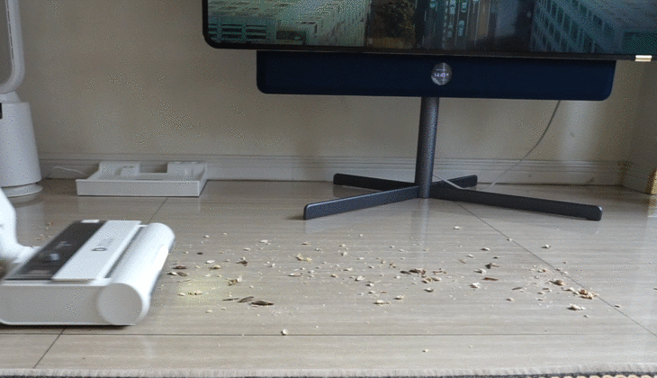 另外,对瓜子壳、巴旦木壳、花生皮等客厅常见的小果壳类垃圾抛洒物,也不用先扫后吸再拖,一样是一次过就很干净,清洁的步骤和次数更少,使用起来也会更轻松。