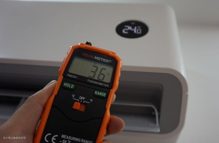 ▲此时,空调出风口的温度在36度左右。