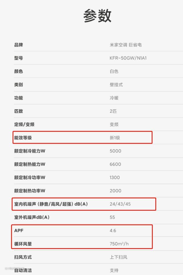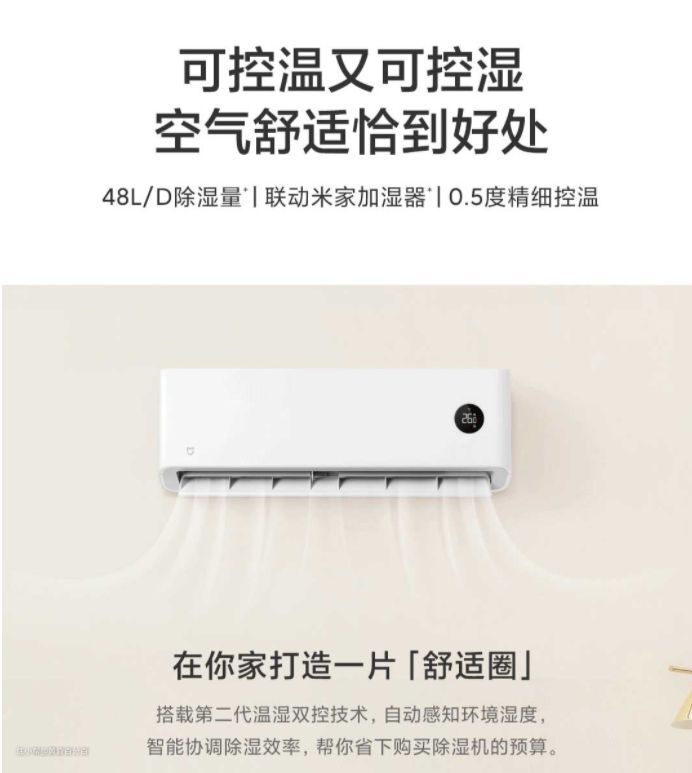 ▲经过查询小米官网,这款巨省电 2P空调有着高达750m³/h 的循环⻛量,难怪它改变温度的速度那么快。