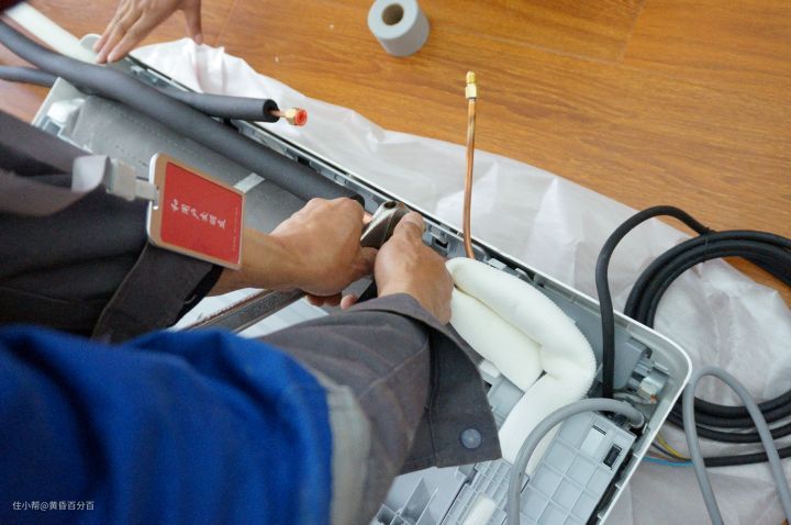 ▲全部安装结束后,师傅会对空调进行抽真空、加冷媒处理,并且会与用户一同确认压力表上的数值,专业的安装师傅要比路边请来的放心太多,完全无需担心空调未彻底抽真空导致的性能损耗与损坏。