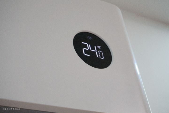 ▲空调通体为纯白色,在右侧有一个很显眼的圆形LED屏幕。