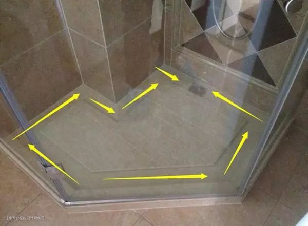 首先给大家讲一讲传统工艺-斜坡排水,它是在贴瓷砖时让其形成一定的倾斜角度,再将地漏安装在最低处,从而帮助水更快流向地漏处。