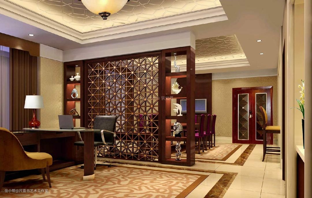 木制的隔断多用于欧式,中式,颜色多以白色和原木色为主。材质一般选择实木,木制格挡的特色在于花纹的特殊性个可塑性,根据不同地方的装修风格,选择花纹样式,这样装出来的效果兼具稳重与自然。中式家装可以尝试,房间空间足够大可以选择实木色。