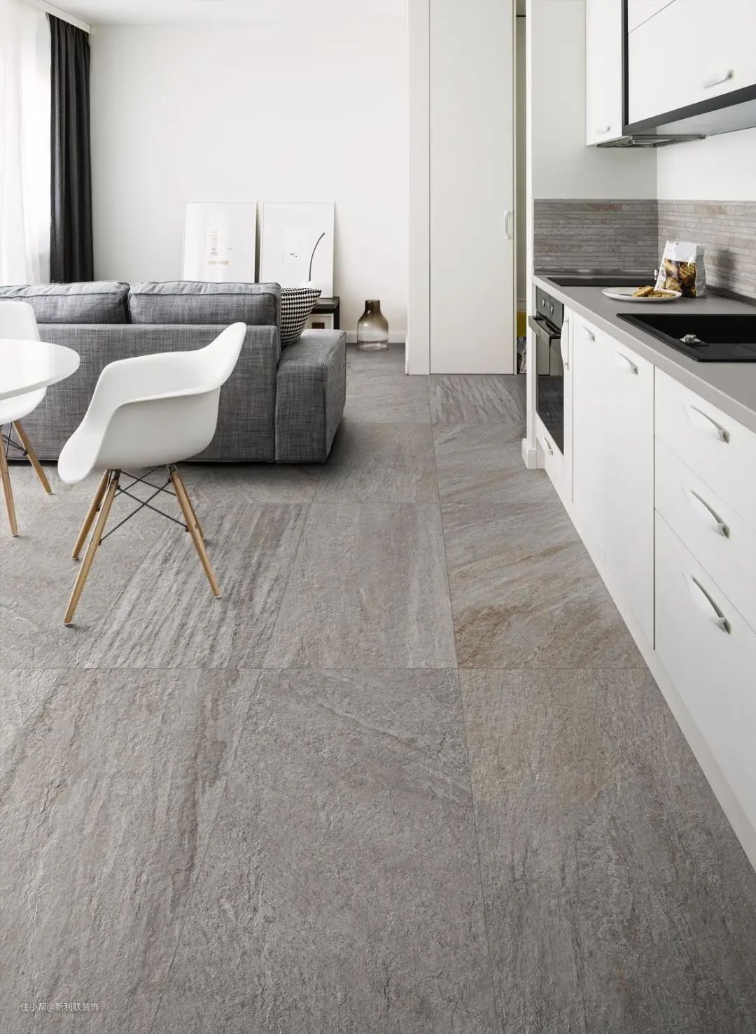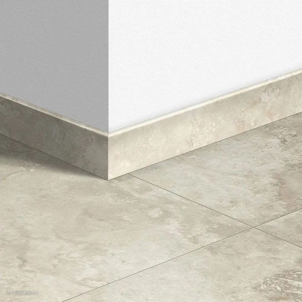 如果瓷砖颜色和墙面颜色接近,还可以切割地砖的一条边,作为踢脚线。比如,浅灰色瓷砖踢脚线,搭配白墙就很自然。因为做踢脚线,瓷砖会露出侧面的砖胚。通体砖美观度更好,瓷砖侧面也有纹理。