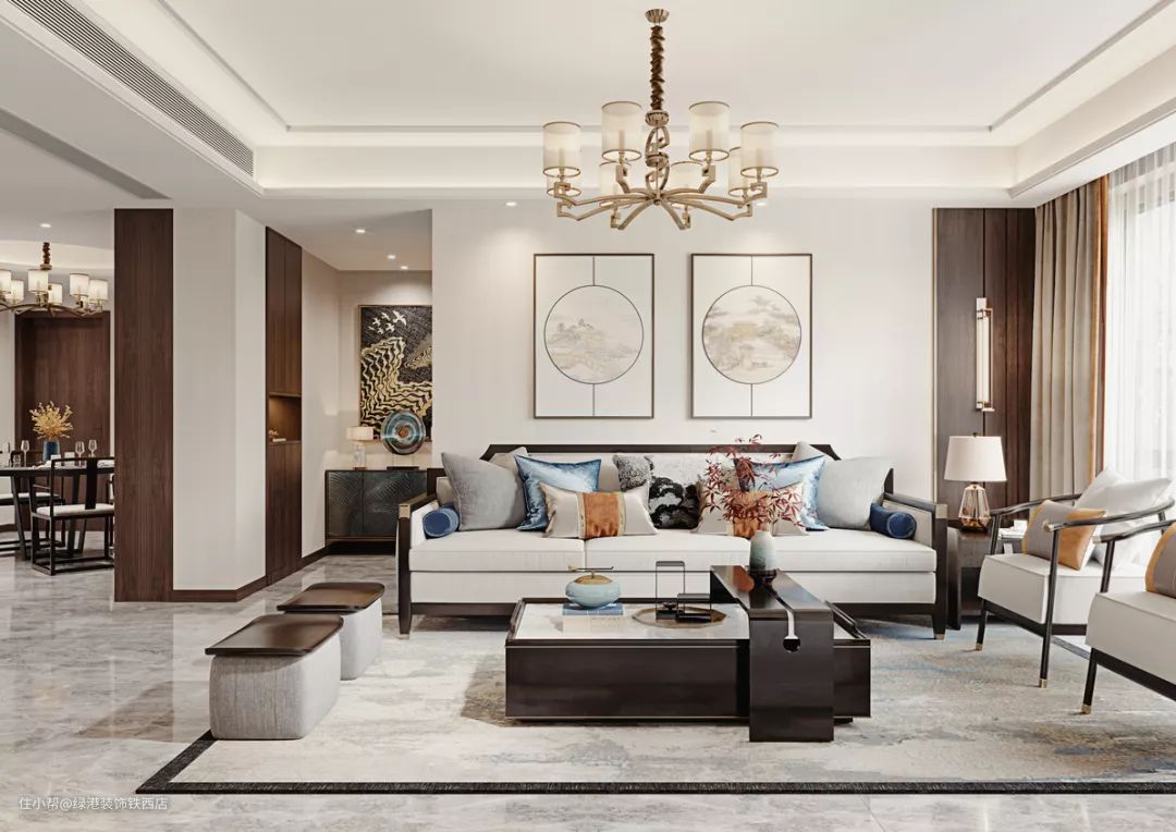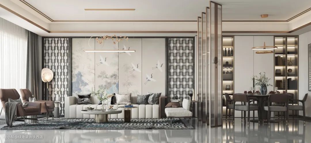 新中式风格融合了庄重与优雅双重气质,还利用了后现代手法,把传统的结构形式通过重新设计组合以现代的方式表现出来。