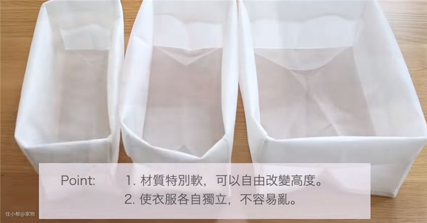 为什么要用它呢?最关键的是一些较为柔软,不能自行直立的衣物,用软布筐收纳,它来收纳最为合适。
