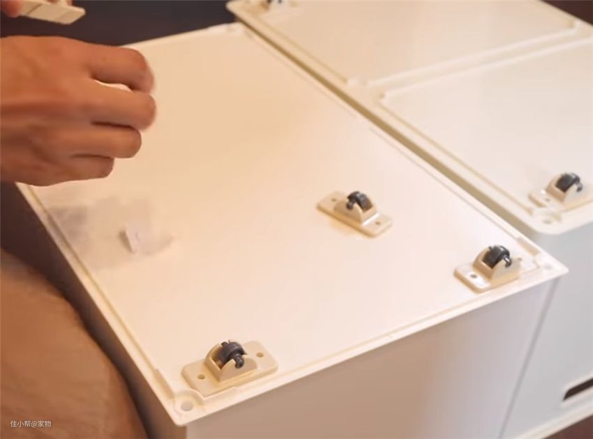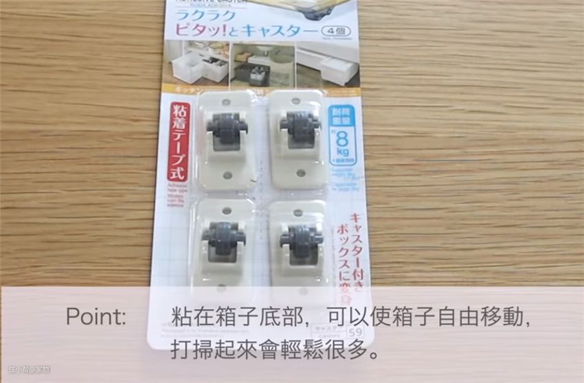 收纳各种衣服时,难免会用到各类的大型收纳箱,放入衣服后通常会变得很沉,难以从床底、桌底抽出,这时候,上面这小小的底轮可就派上大用场了~