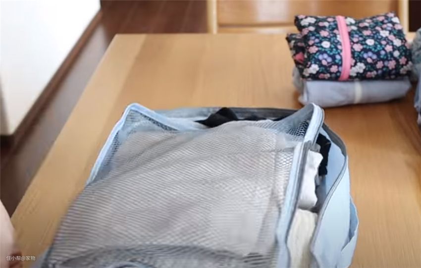 放入后,再拉上拉链,就能化零为整,让收纳更加方便了,这里切记一定要买那种带网面的收纳袋子,透气性会更好一些,避免发霉或者闷时间长了异味的出现。