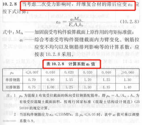 当考虑到二次受力影响时,纤维复合材的滞后应变应按下式计算: