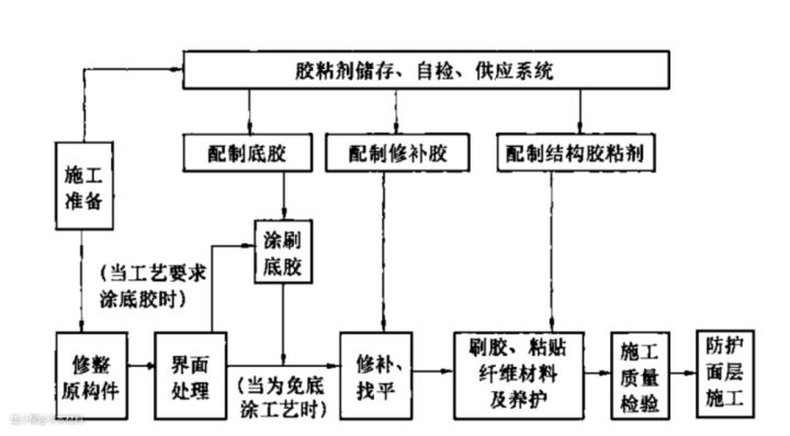 标准施工流程在前文中已一进行了描述,此处不再赘述,可参考《建筑结构加固工程施工质量验收规范》GB50550-2010 外粘纤维复合材部分。