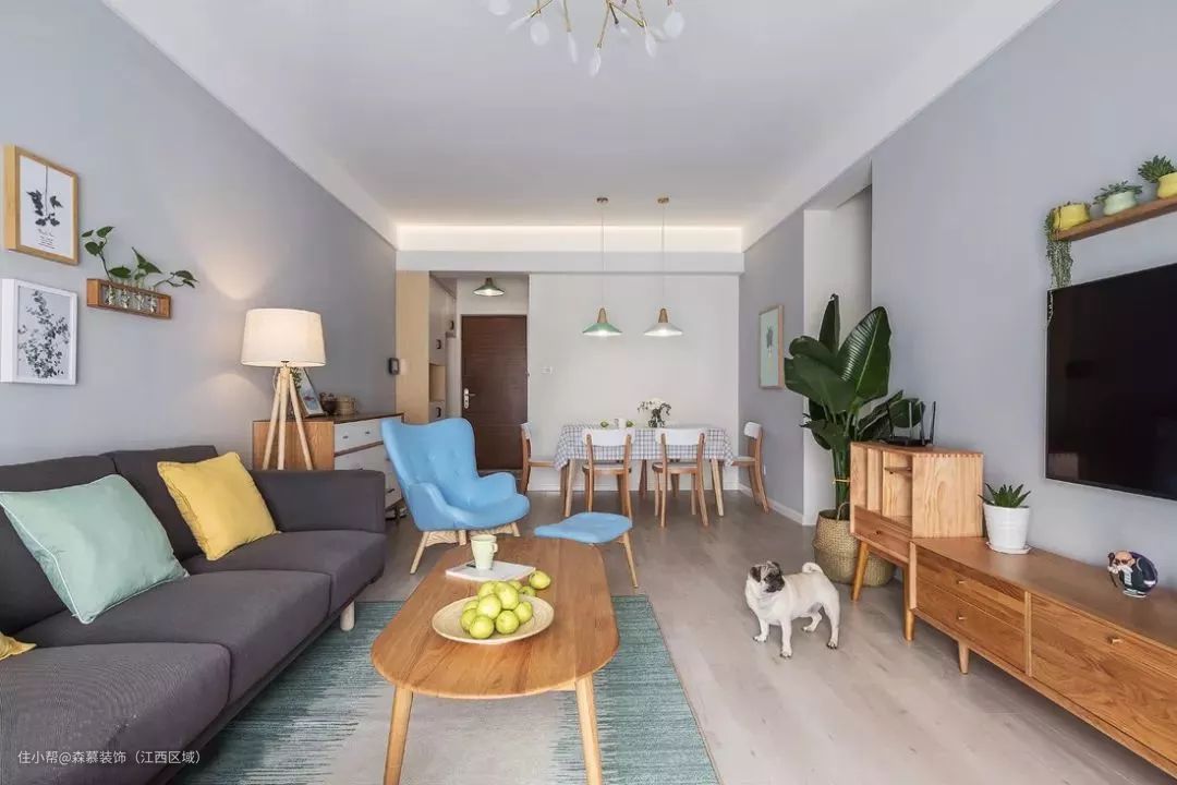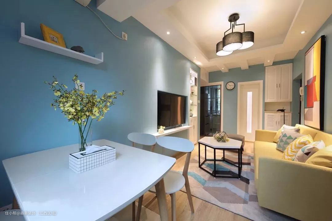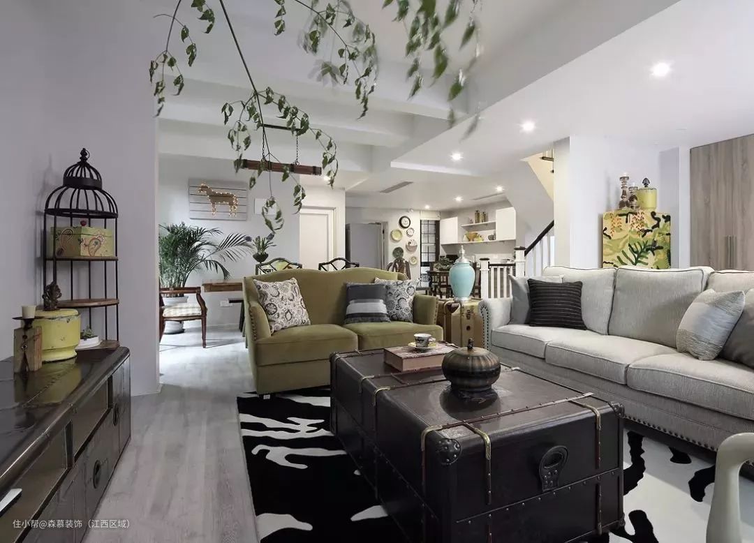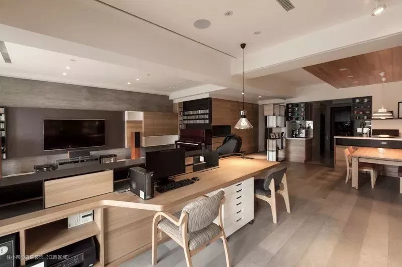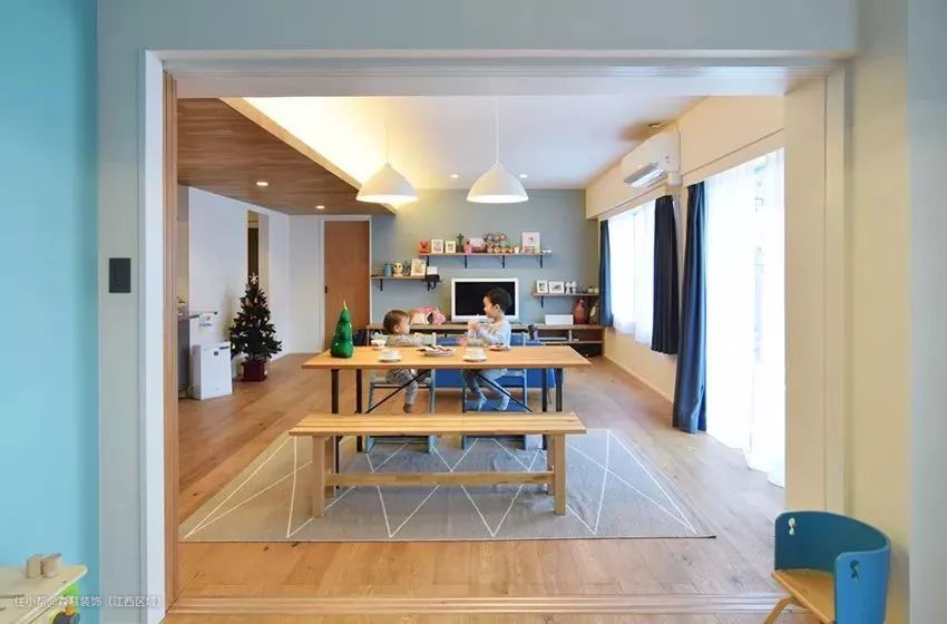 30、客餐厅做个高低错开的吊顶,美化横梁也挺漂亮。